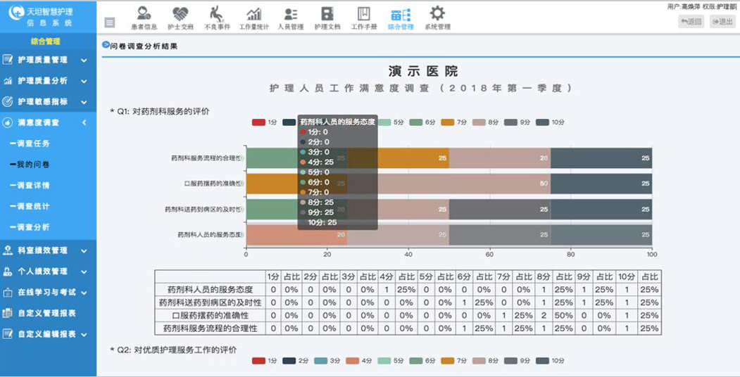 天坦按照國(guó)際JCI標(biāo)準(zhǔn)和HIMSS 7級(jí)標(biāo)準(zhǔn),將護(hù)理管理關(guān)注點(diǎn)進(jìn)行梳理、歸納、整合,將住院病房、護(hù)士工作站、護(hù)理部、醫(yī)院信息系統(tǒng)4大場(chǎng)景互聯(lián)互通,實(shí)現(xiàn)數(shù)據(jù)傳輸及時(shí)性、準(zhǔn)確性,利用對(duì)各項(xiàng)數(shù)據(jù)的挖掘,生成各種統(tǒng)計(jì)報(bào)表,為管理者提供科學(xué)分析決策,形成一套安全、有效、完整、流暢的管理系統(tǒng)。