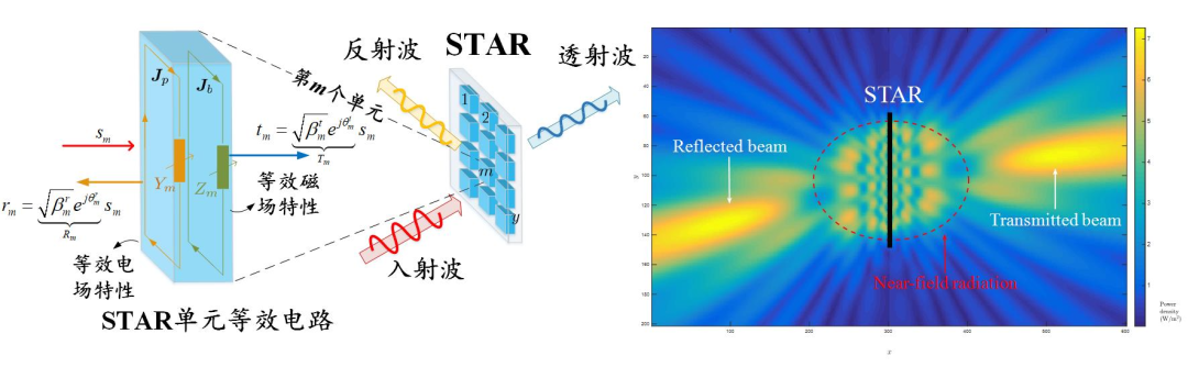 就 STARS 的控制而言,STARS 需要同時(shí)考慮每個(gè)單元折射和反射信號(hào)的控制,于是 STARS 的控制相比傳統(tǒng) RIS 更加復(fù)雜。每個(gè) STARS 陣元需要具備獨(dú)立可調(diào)的表面電、磁阻抗,這樣,每個(gè)單元中的面電流強(qiáng)度(對(duì)應(yīng)電阻抗)和渦旋電流強(qiáng)度(對(duì)應(yīng)磁阻抗)才可以被改變,從而人為的控制其產(chǎn)生的反射和透射信號(hào)的幅值與相位,對(duì)無(wú)線信號(hào)的傳播環(huán)境進(jìn)行“人工配置”。