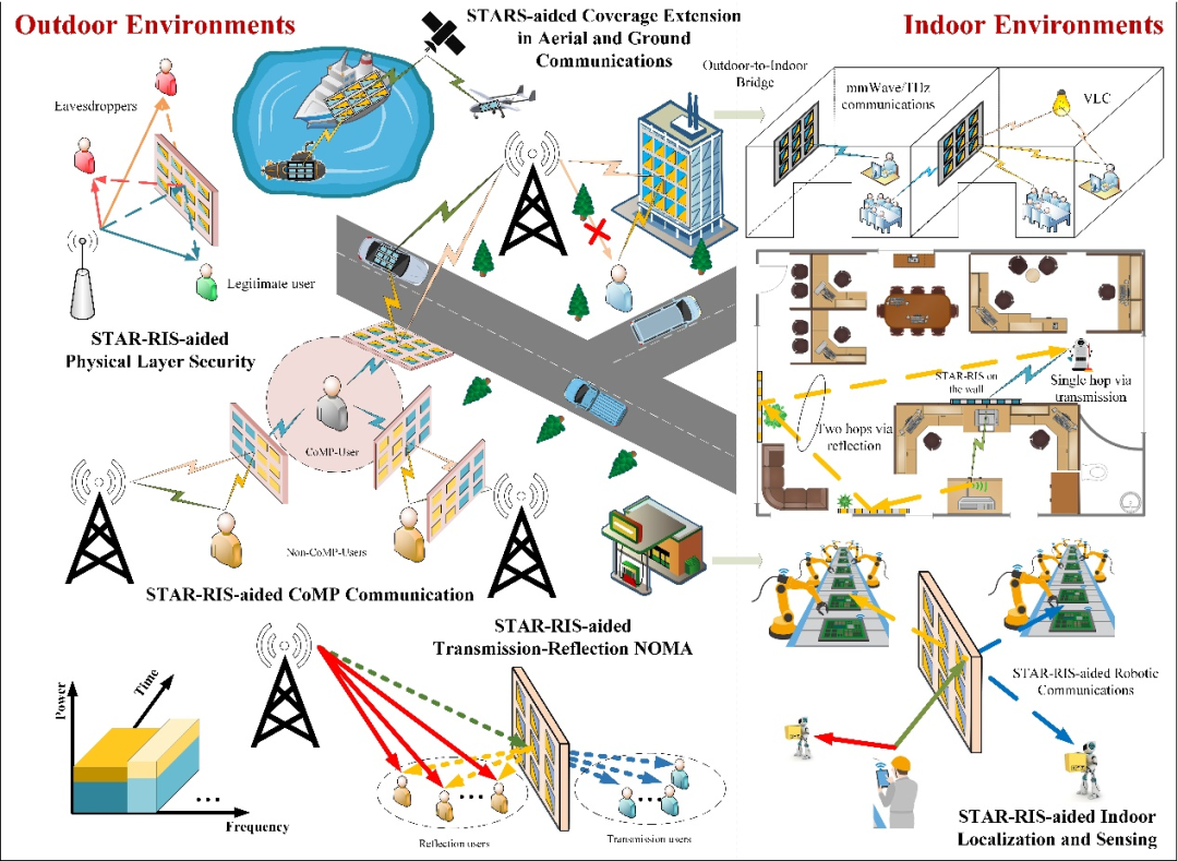 STARS 具有非常廣泛的應(yīng)用場(chǎng)景,比如在 STAR: Simultaneous Transmission and Reflection for 360° Coverage by Intelligent Surfaces 中所列舉的 STARS-NOMA 蜂窩網(wǎng)絡(luò),工業(yè)通信場(chǎng)景,室內(nèi)/室外信號(hào)增強(qiáng)以及海上通信等諸多應(yīng)用場(chǎng)景。例如: